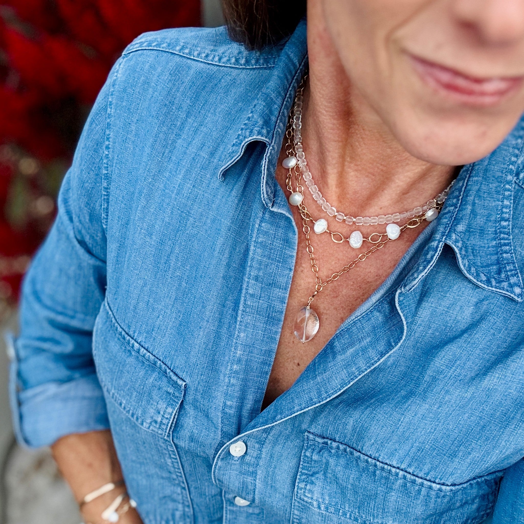 Timeless, versatile jewelry that's crafted to last. Handmade in our Nashville studio using semi-precious gems, freshwater pearls, 14k gold filled and sterling silver, each design is produced in small batches, versus mass production... that way you get more of "wow, where did you get that?" and less of "oh, I have the same thing."