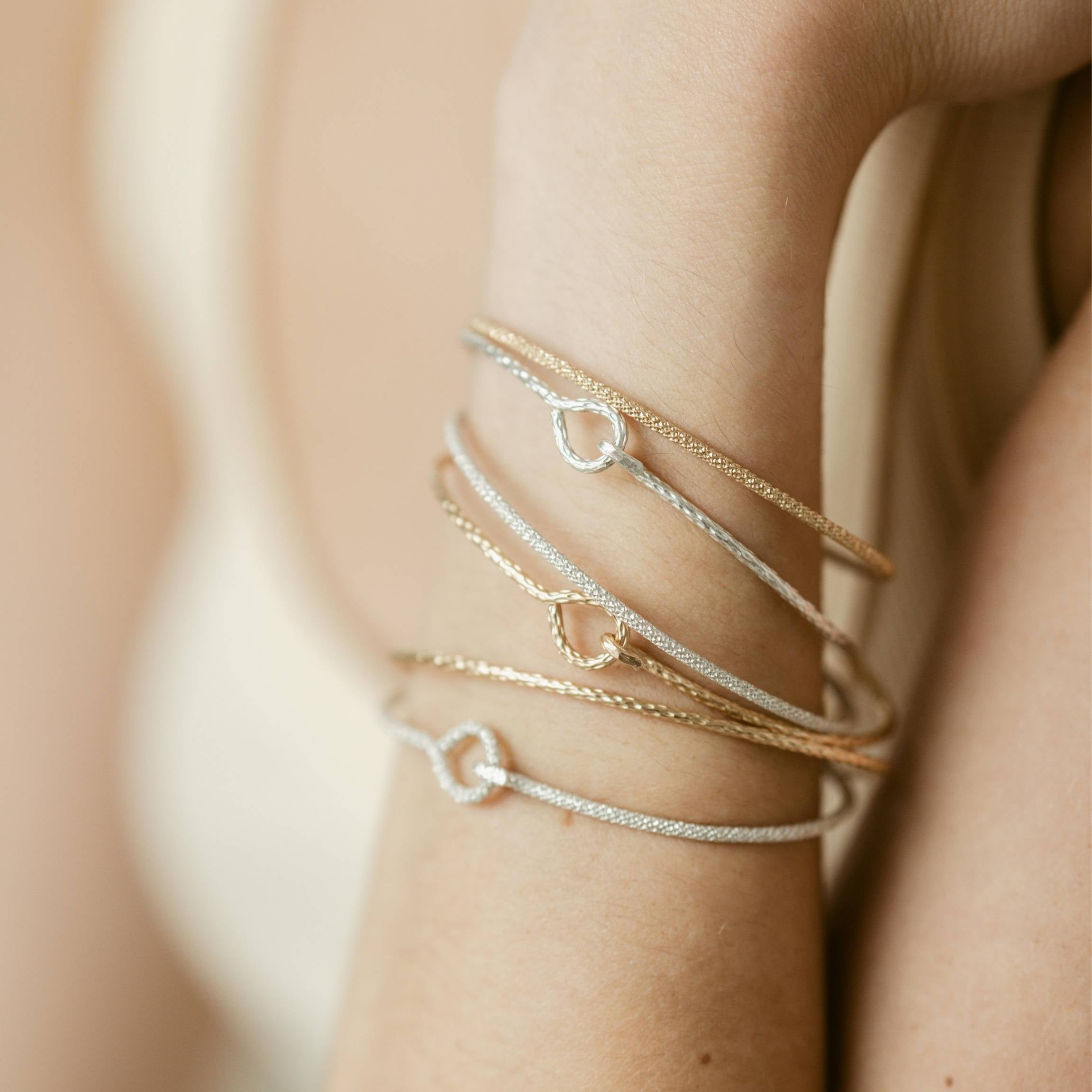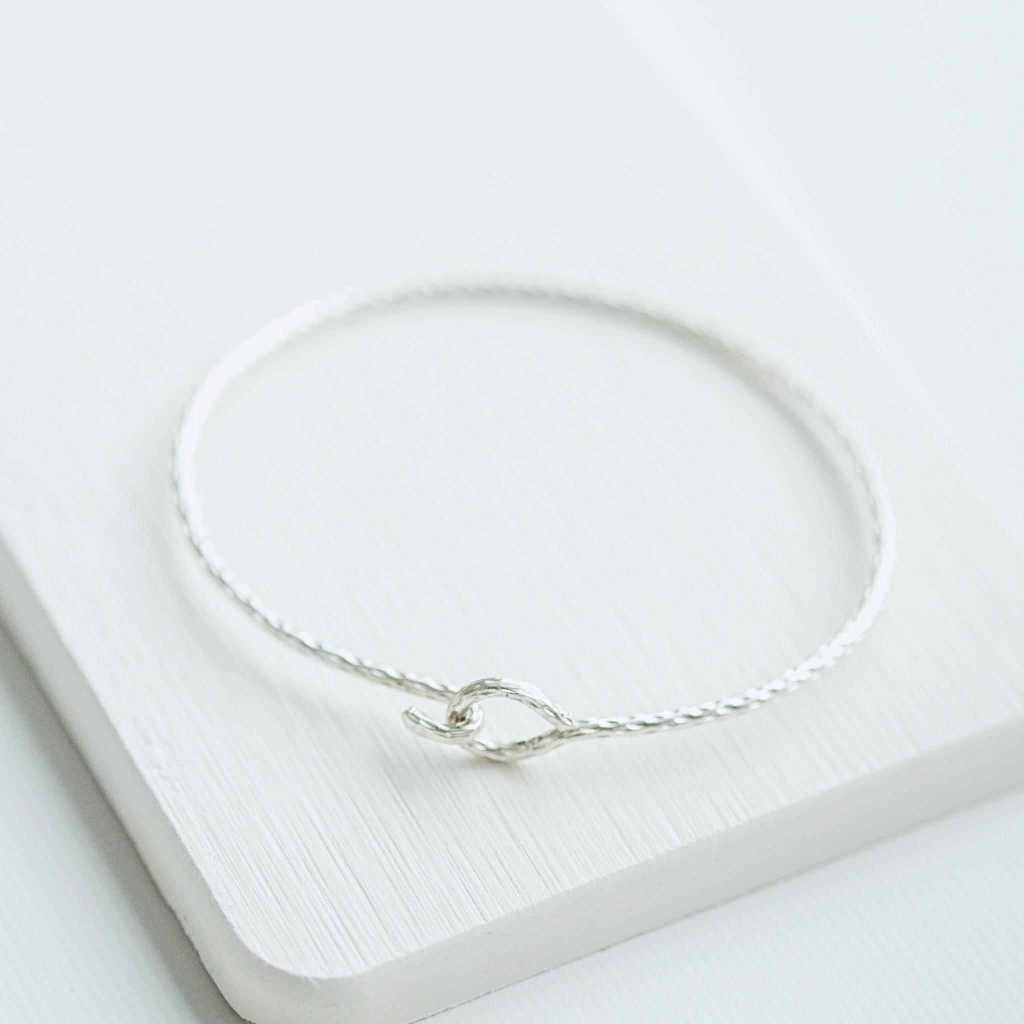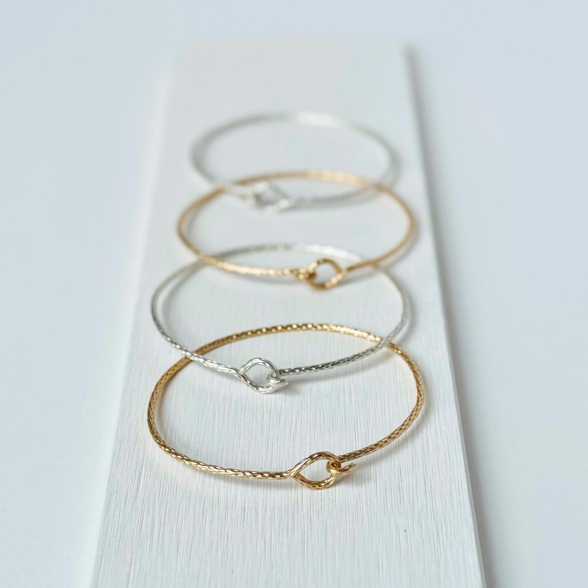 Sleek, simple, but alive with texture — our Lasso Textured Bangle is hand shaped and finished with our signature lasso catch closure for a look that’s effortlessly refined. This textured bangle is the same design as our Lasso Hammered bangle but with a much more textured effect. It’s the perfect piece to wear solo or stacked for extra dimension.