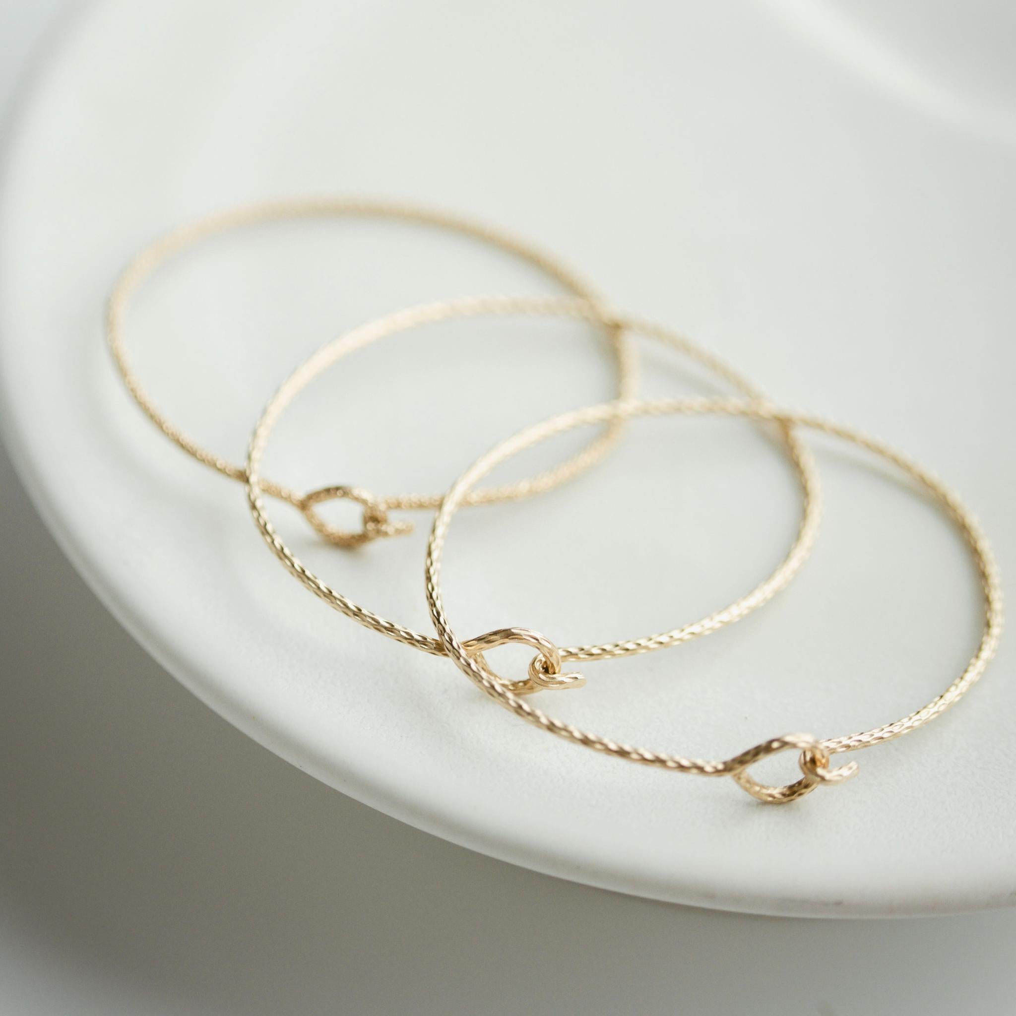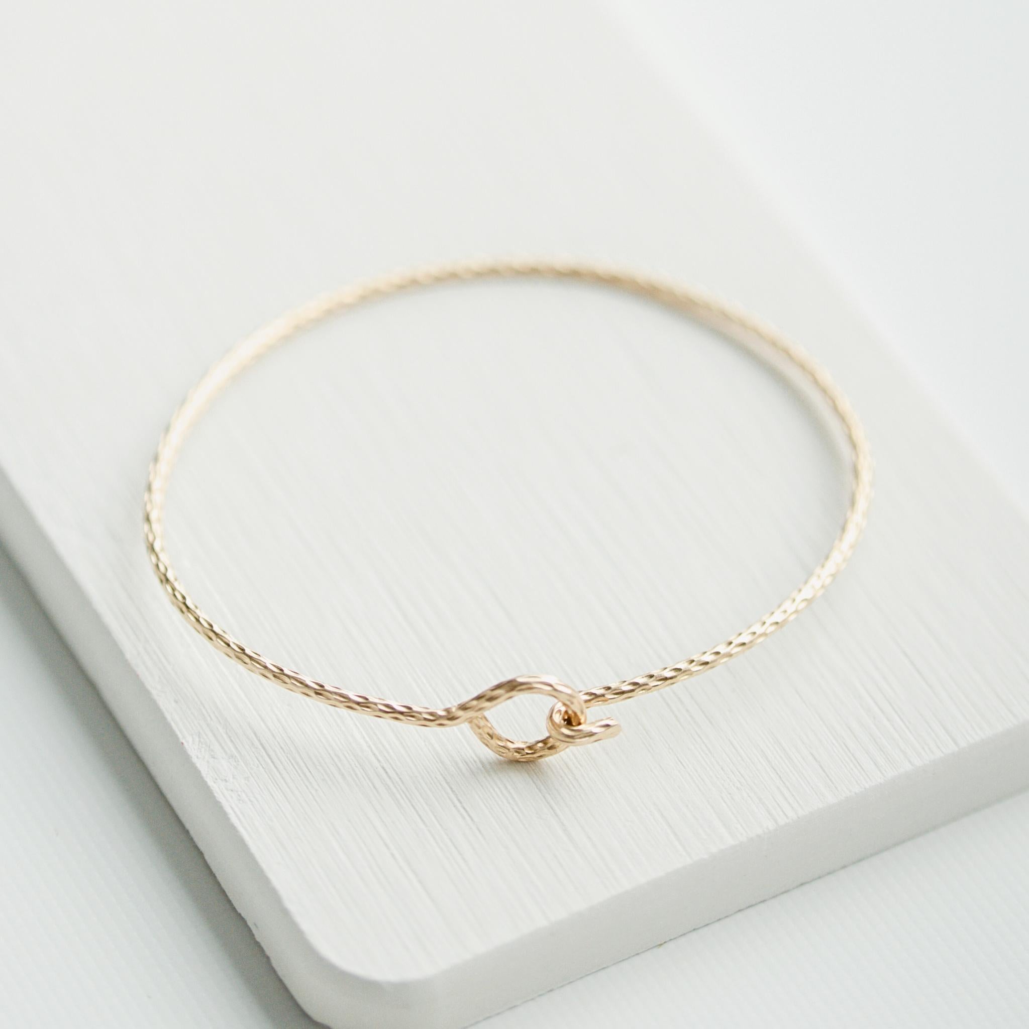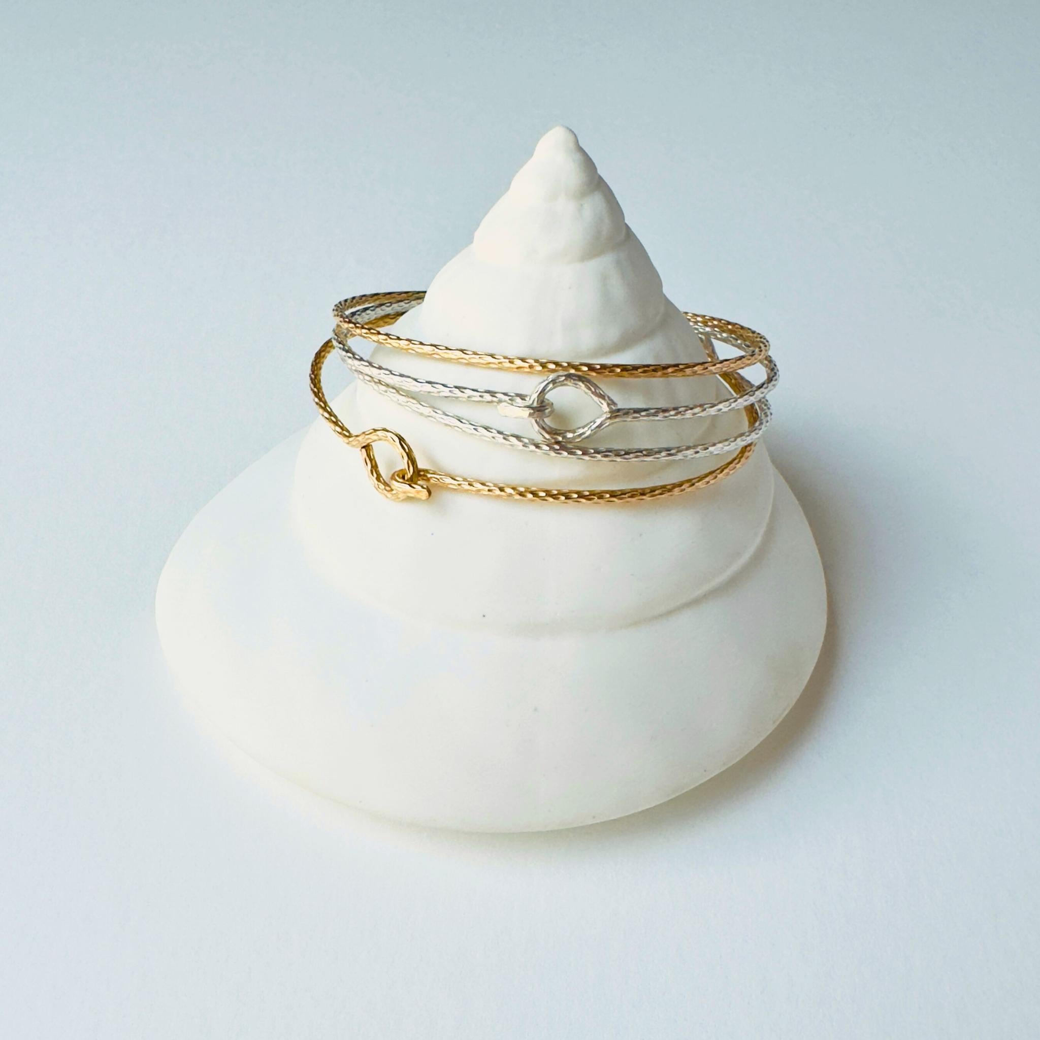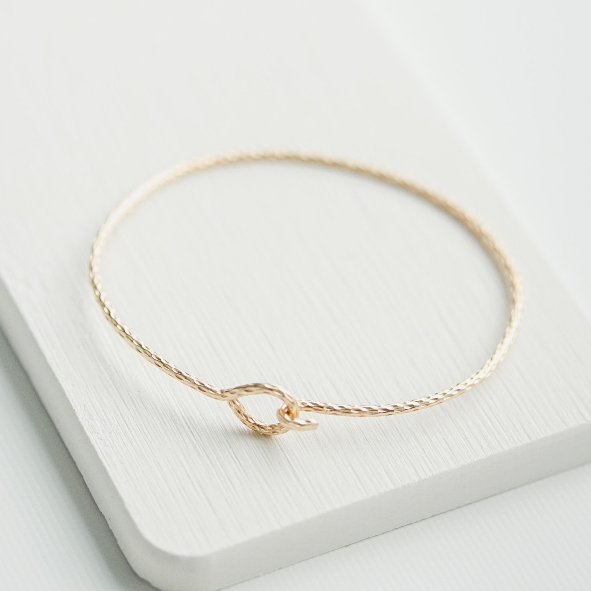 Sleek, simple, but alive with texture — our Lasso Textured Bangle is hand shaped and finished with our signature lasso catch closure for a look that’s effortlessly refined. This textured bangle is the same design as our Lasso Hammered bangle but with a much more textured effect. It’s the perfect piece to wear solo or stacked for extra dimension.