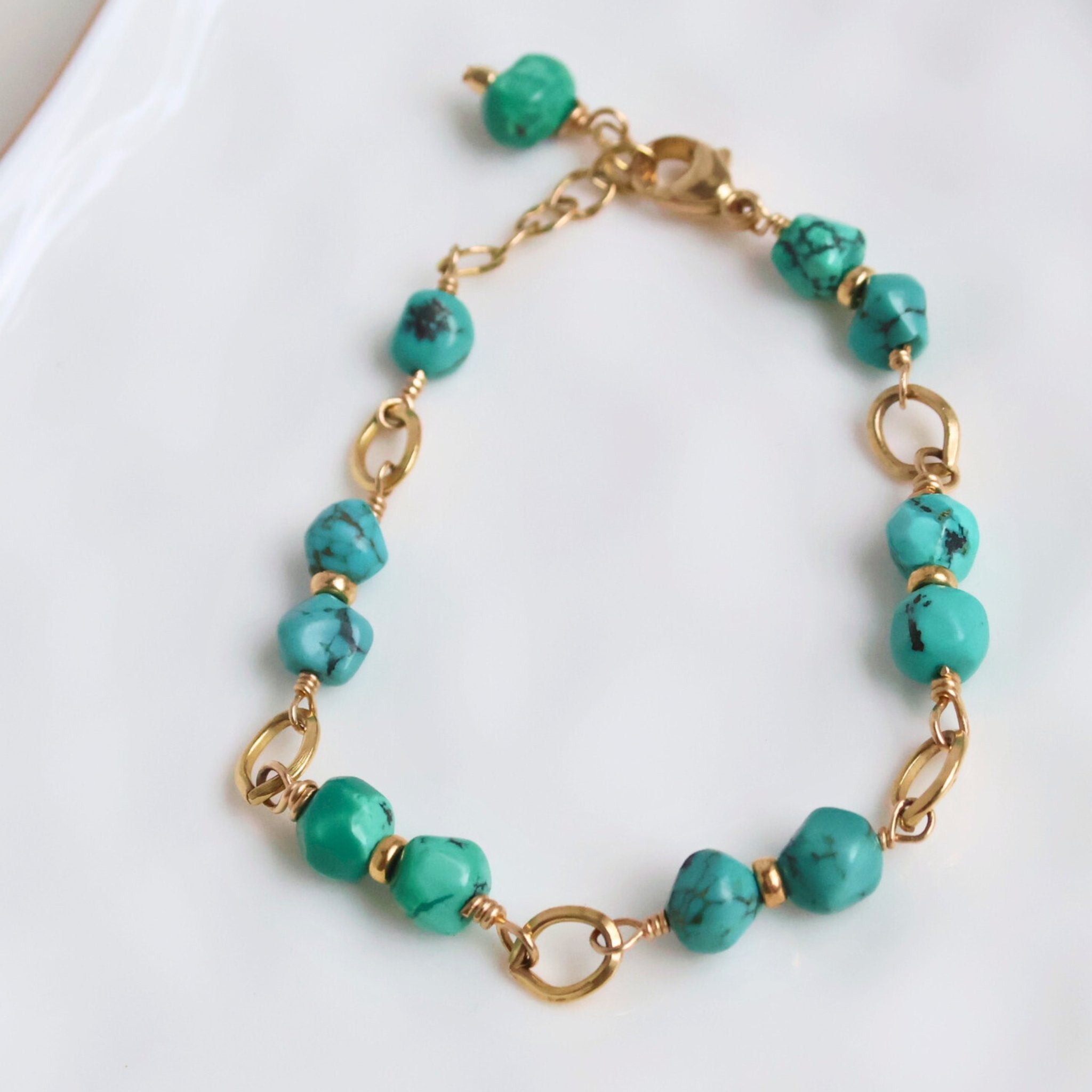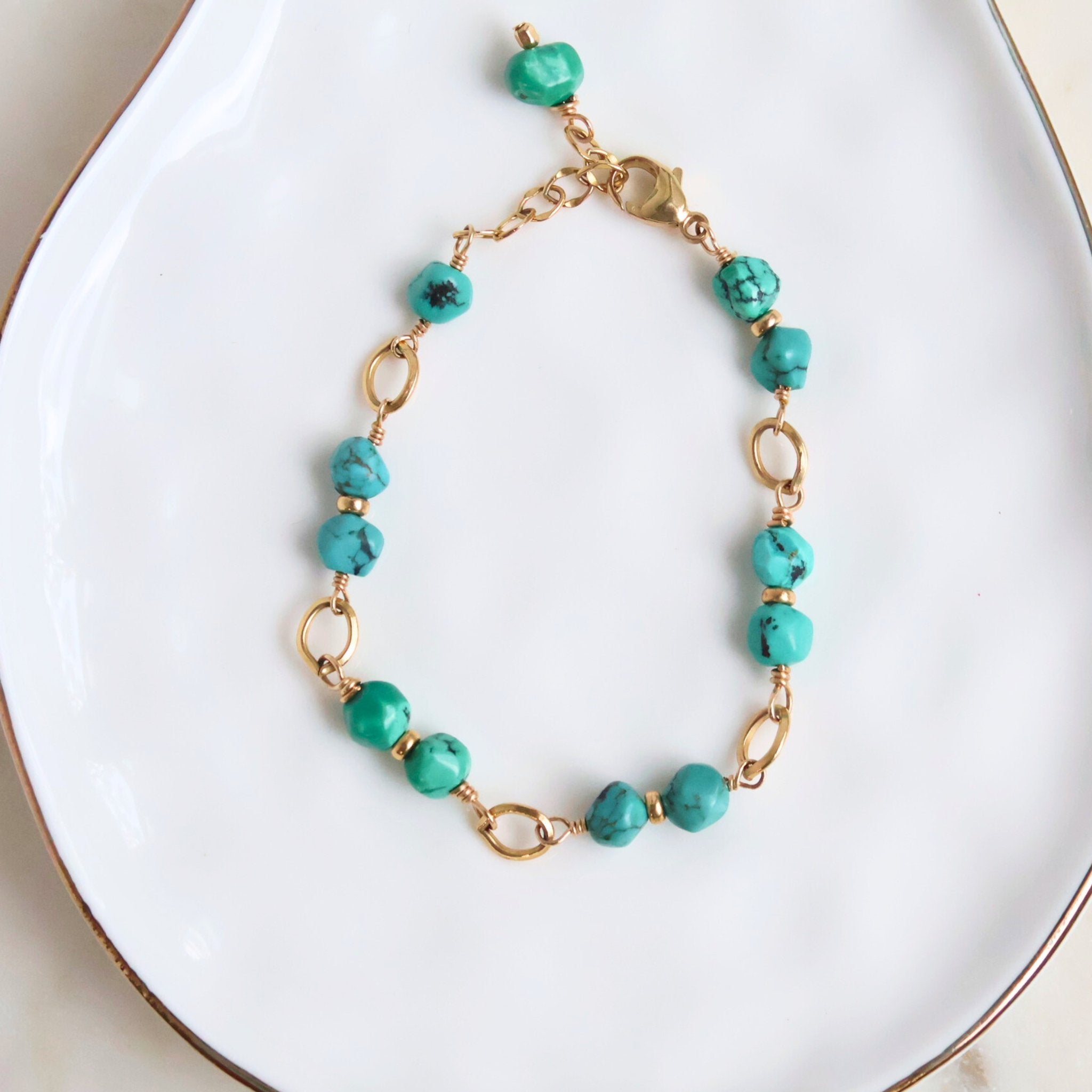 • Materials: 14k gold-filled chain and links, natural Turquoise nuggets