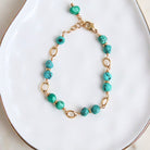Our Lotus Turquoise Bracelet pairs vibrant, natural turquoise nuggets -- with shades of blue, green and subtle black veining -- with bold 14k gold-filled links for a look that’s both timeless and modern. Each piece is handcrafted with care and finished with our 14k gold filled dappled chain for subtle texture and adjustability. Bracelet is made with extra chain length giving you added versatility on how you where it.