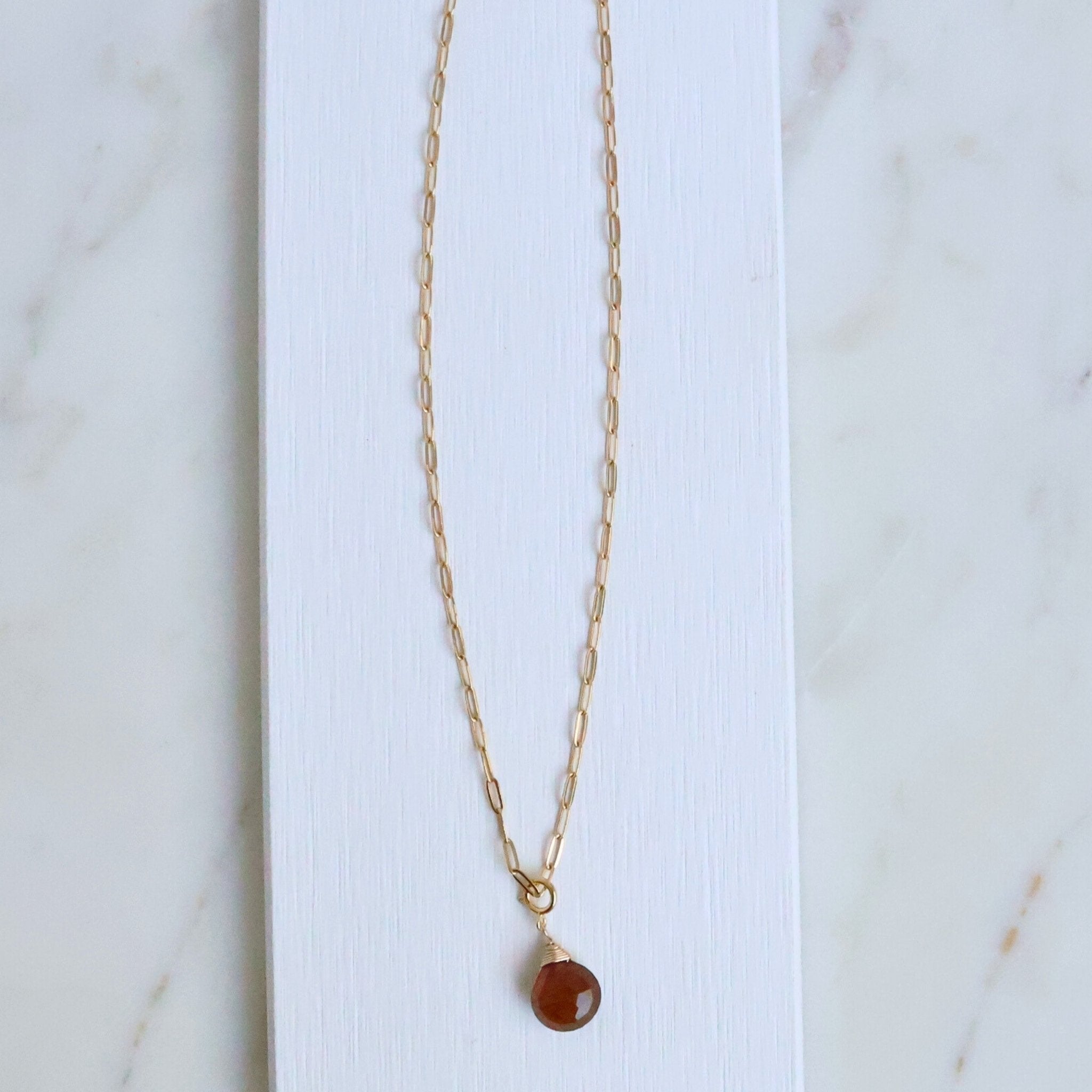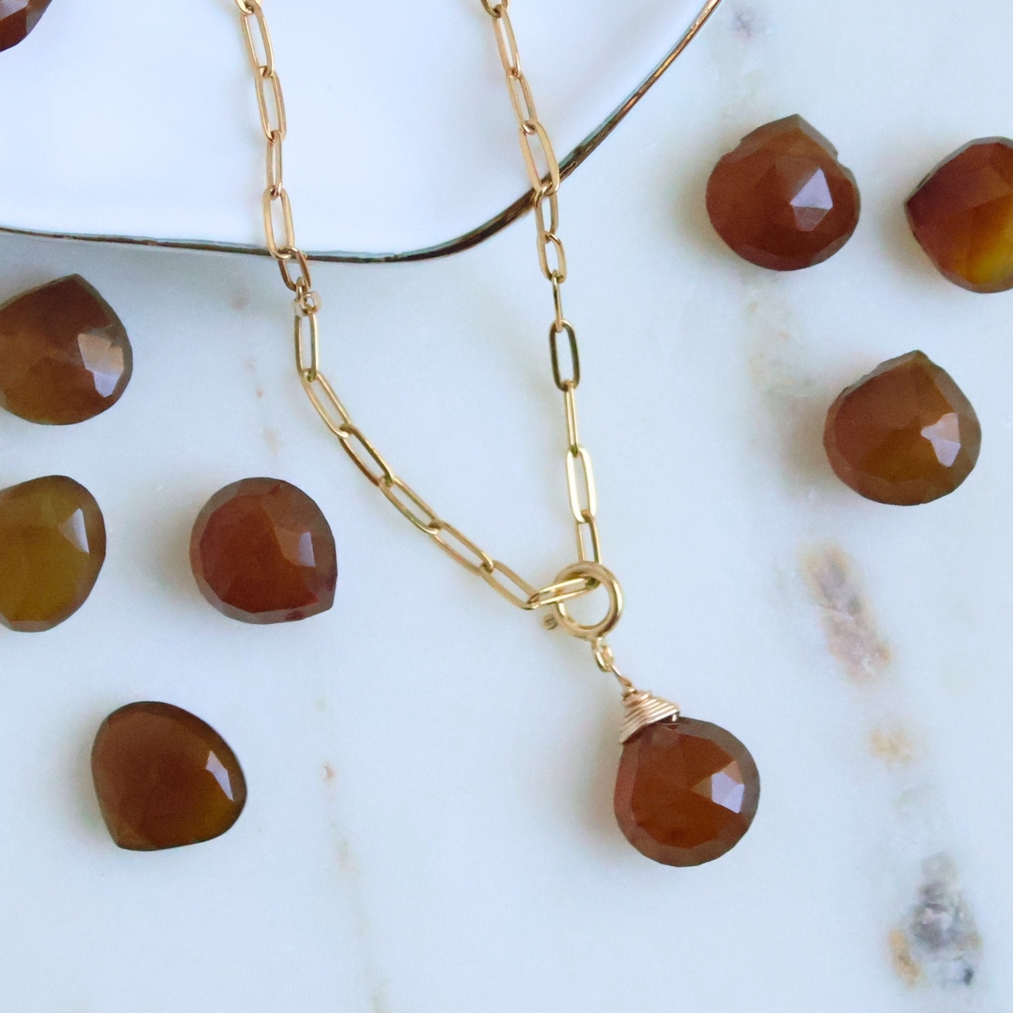 Materials: 14k gold-filled wire and clasp; caramel Chalcedony faceted stone