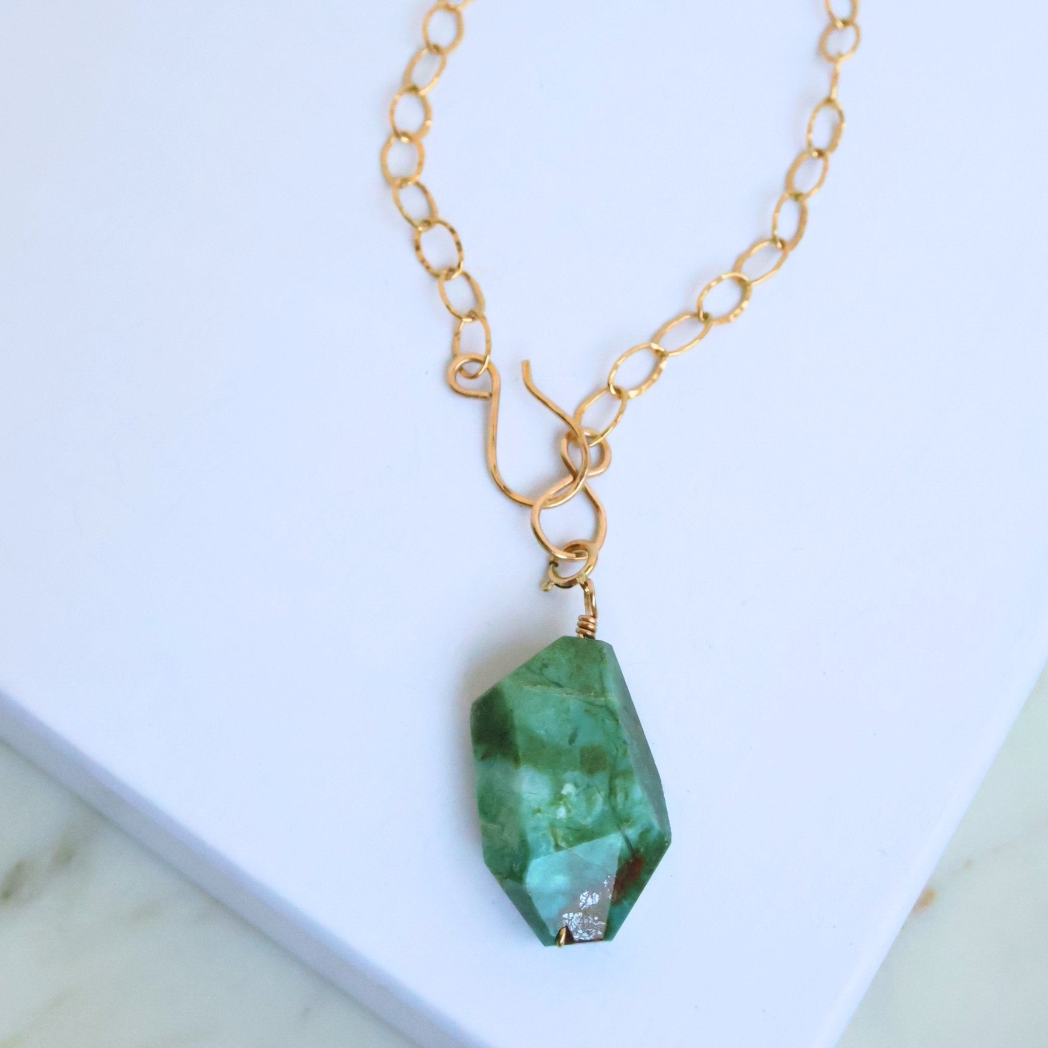 Materials: 14k gold-filled wire and clasp; natural Chrysocolla stone