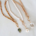 Wear Kinsie on its own for the timeless simplicity of a neutral pearl necklace, layer it with your favorite chains, or style it with the clasp in front to highlight a single gemstone or pearl charm. A fresh take on an enduring favorite. Kinsie is also available in white and copper.