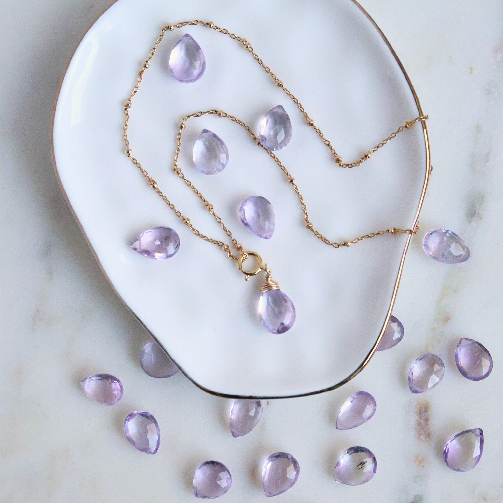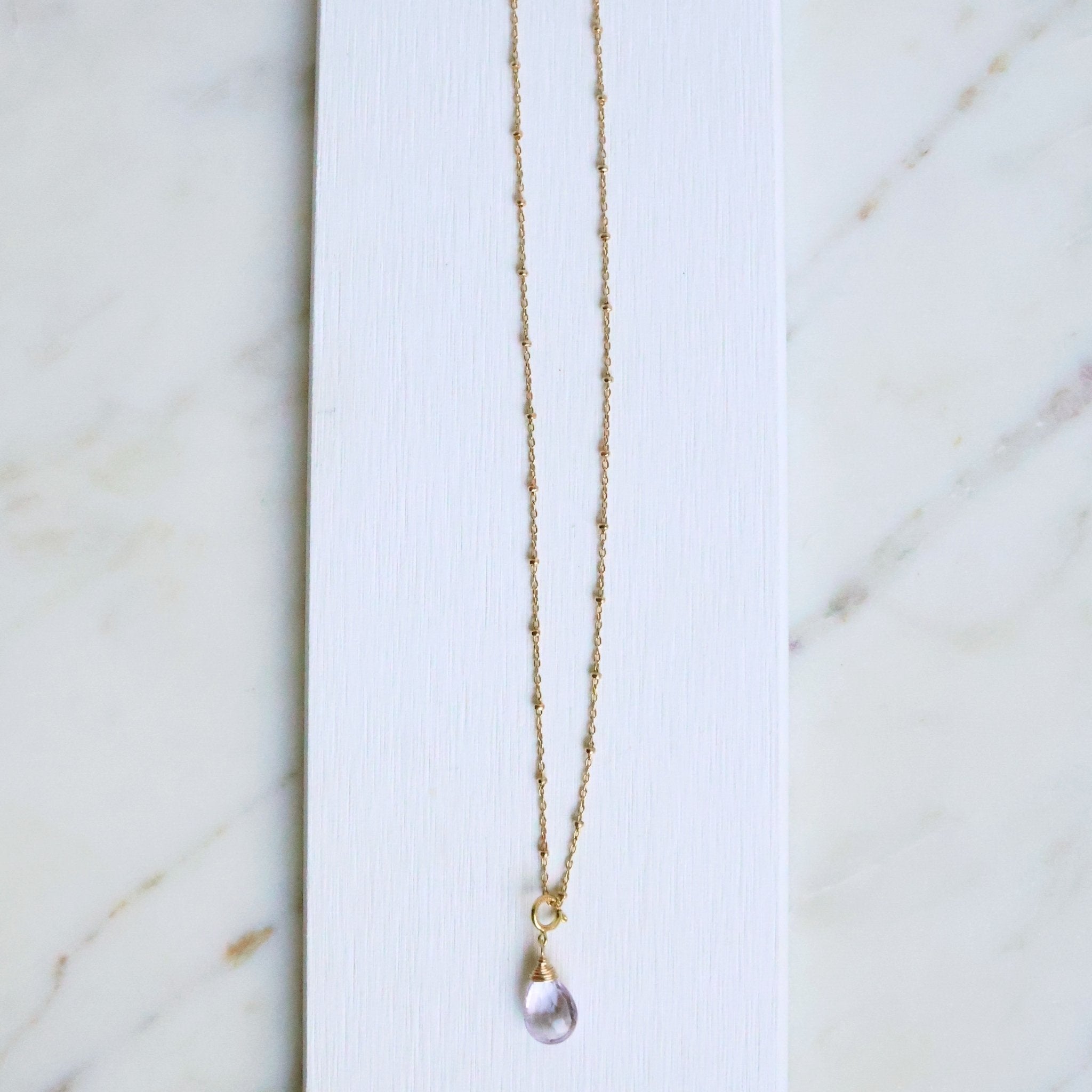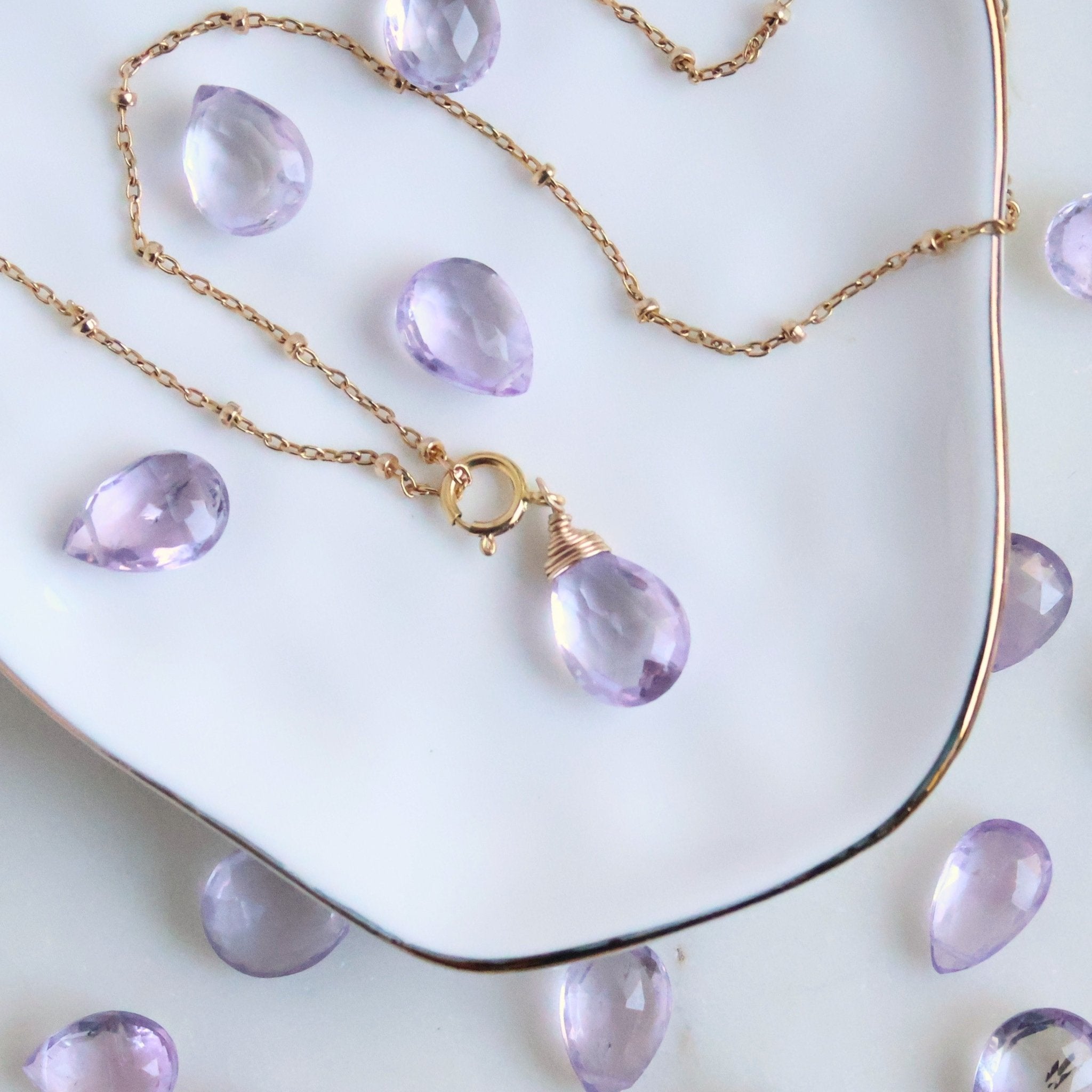 • Materials: 14k gold-filled wire and clasp; natural Pink Amethyst faceted heart gemstone