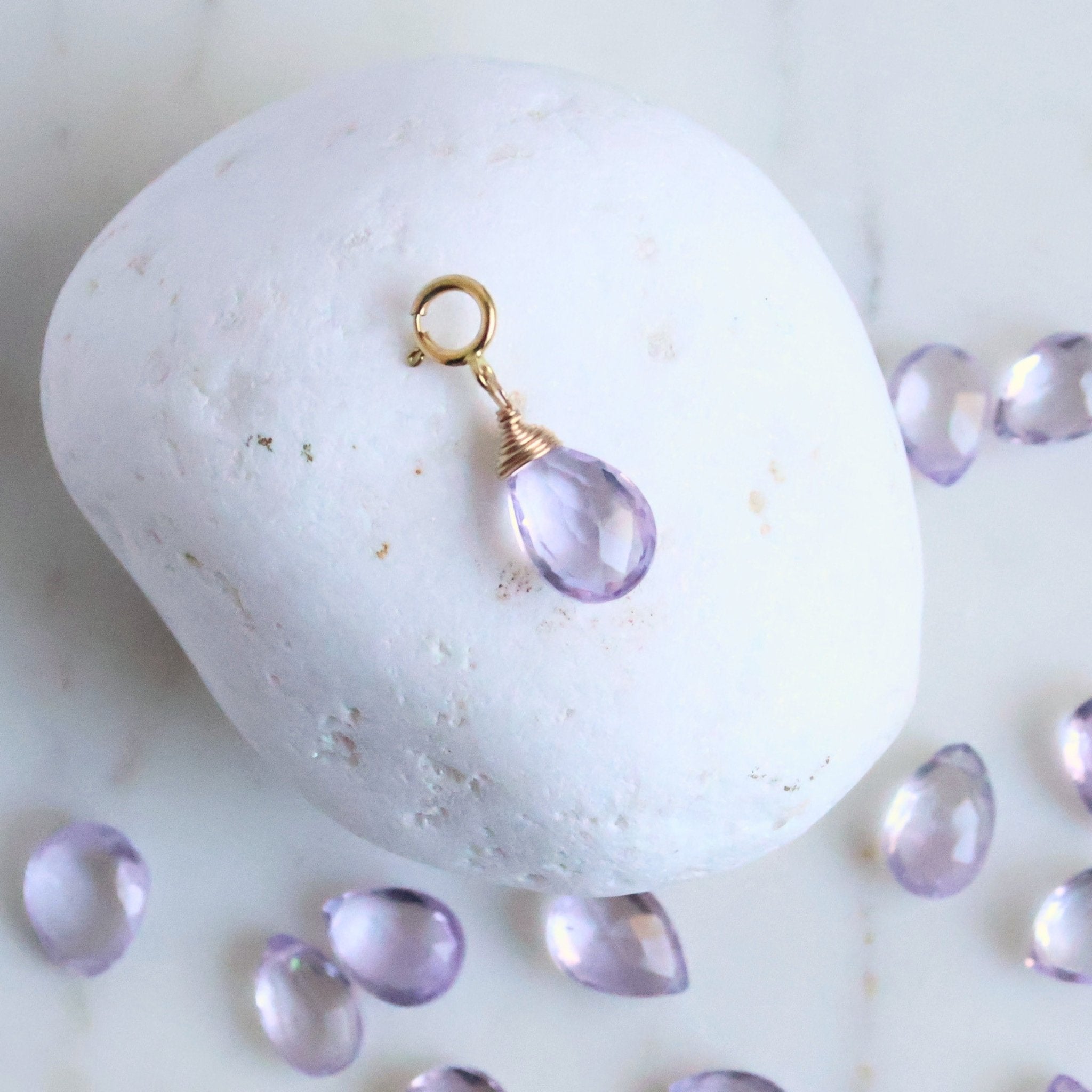 Soft and romantic, our Pink Amethyst Heart Charm Drop shines with subtle lavender tones. It’s the perfect touch of feminine charm for everyday wear. Designed for endless versatility, our removable charm drops can clip securely onto a chain link, over the chain to float freely, or attach to a heavier clasp as a focal accent.