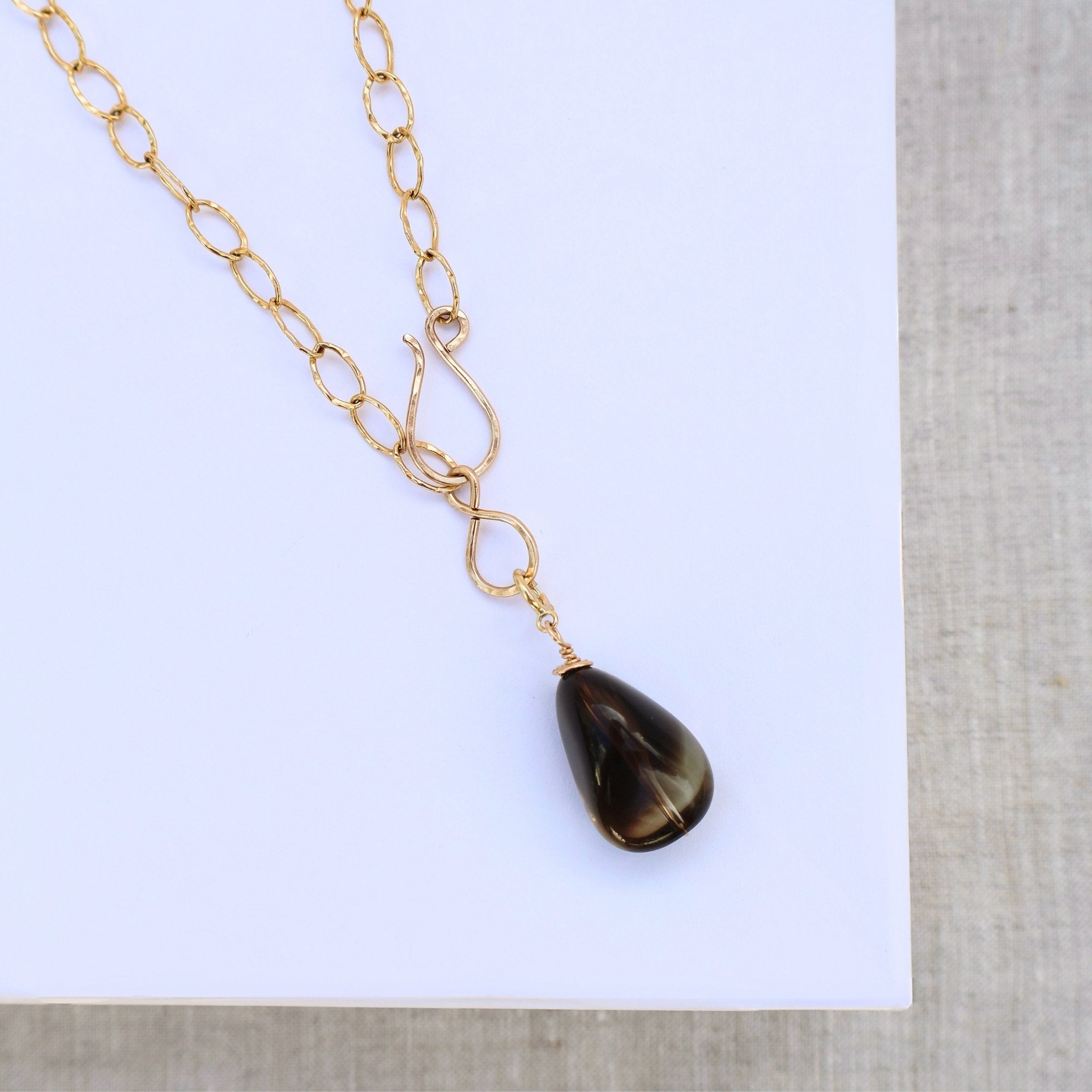 Materials: 14k gold-filled wire and clasp; natural, Smokey Quartz smooth stone