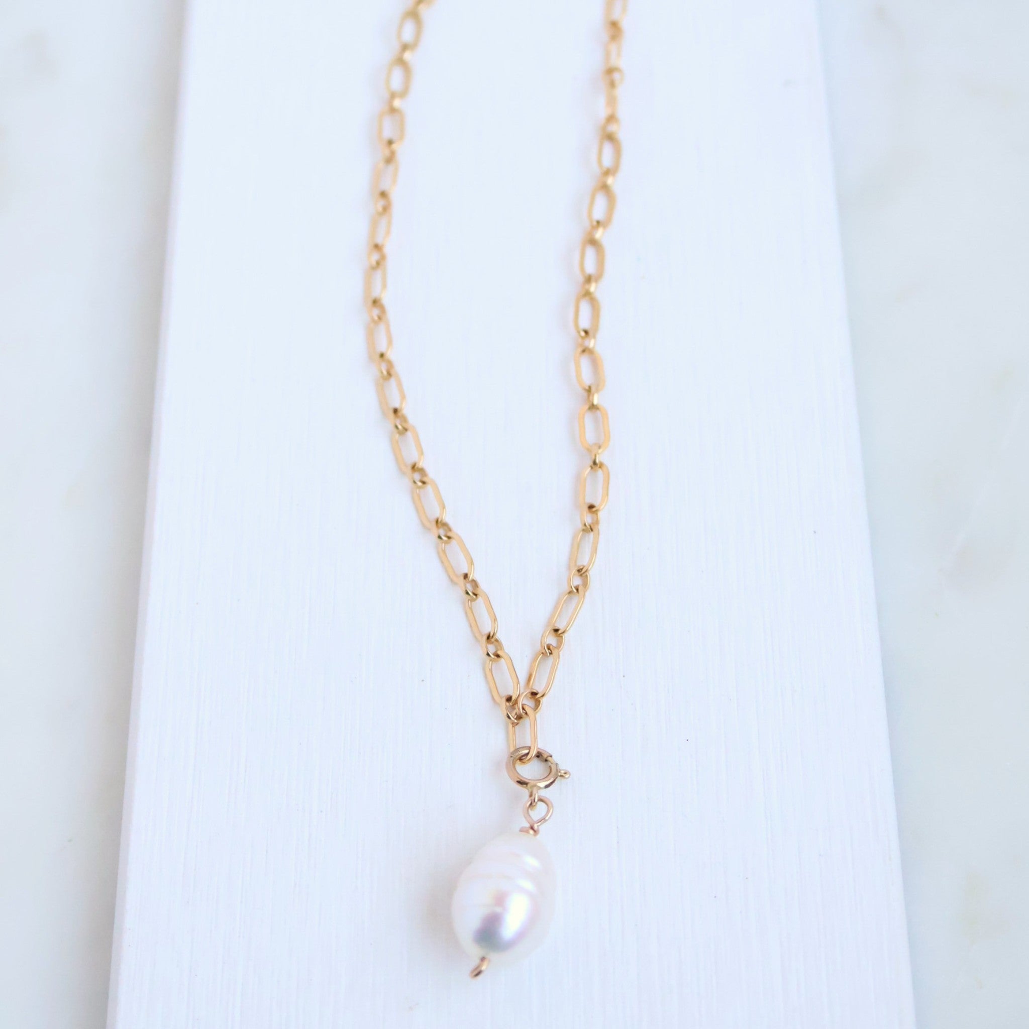 With understated elegance, our White Baroque Freshwater Pearl Charm Drop adds a classic finishing touch to any chain. Designed for endless versatility, our removable charm drops can clip securely onto a chain link, over the chain to float freely, or attach to a heavier clasp as a focal accent. For a delightful combination, check out our White Star FWP earrings as well.