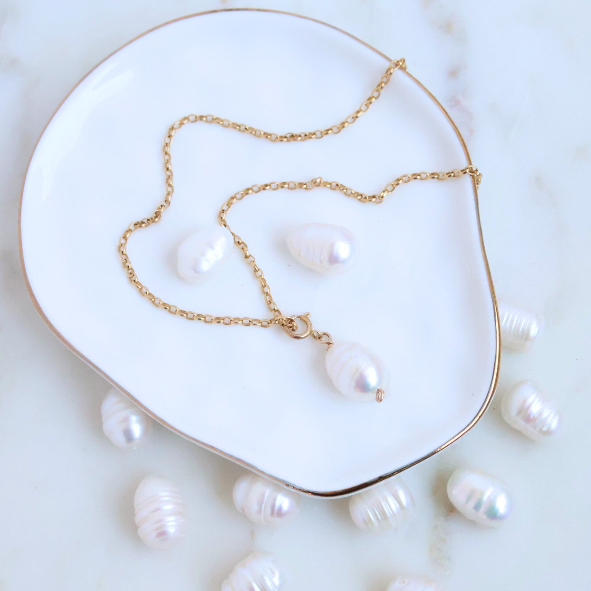 Materials: 14k gold-filled wire and clasp; small Baroque Freshwater Pearl