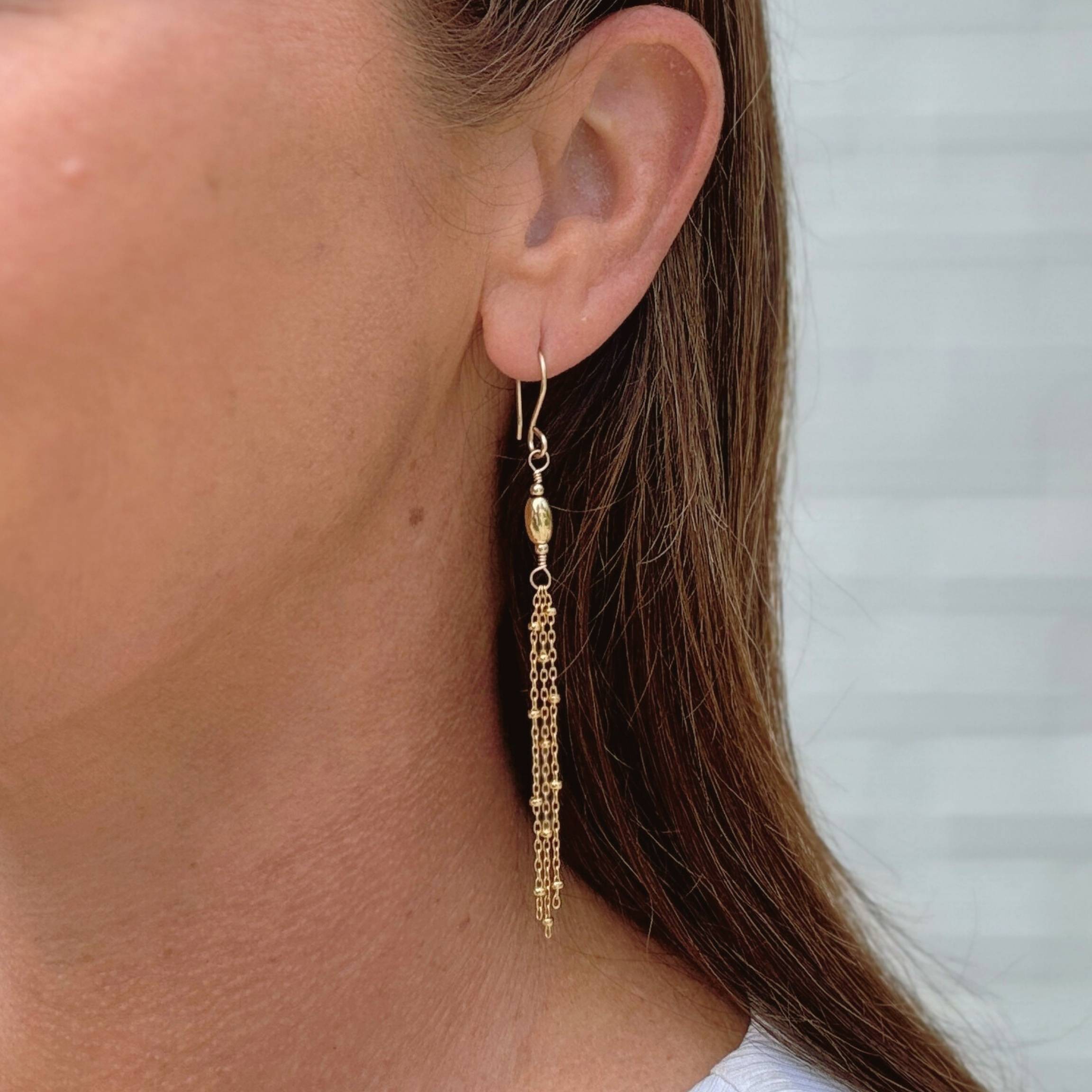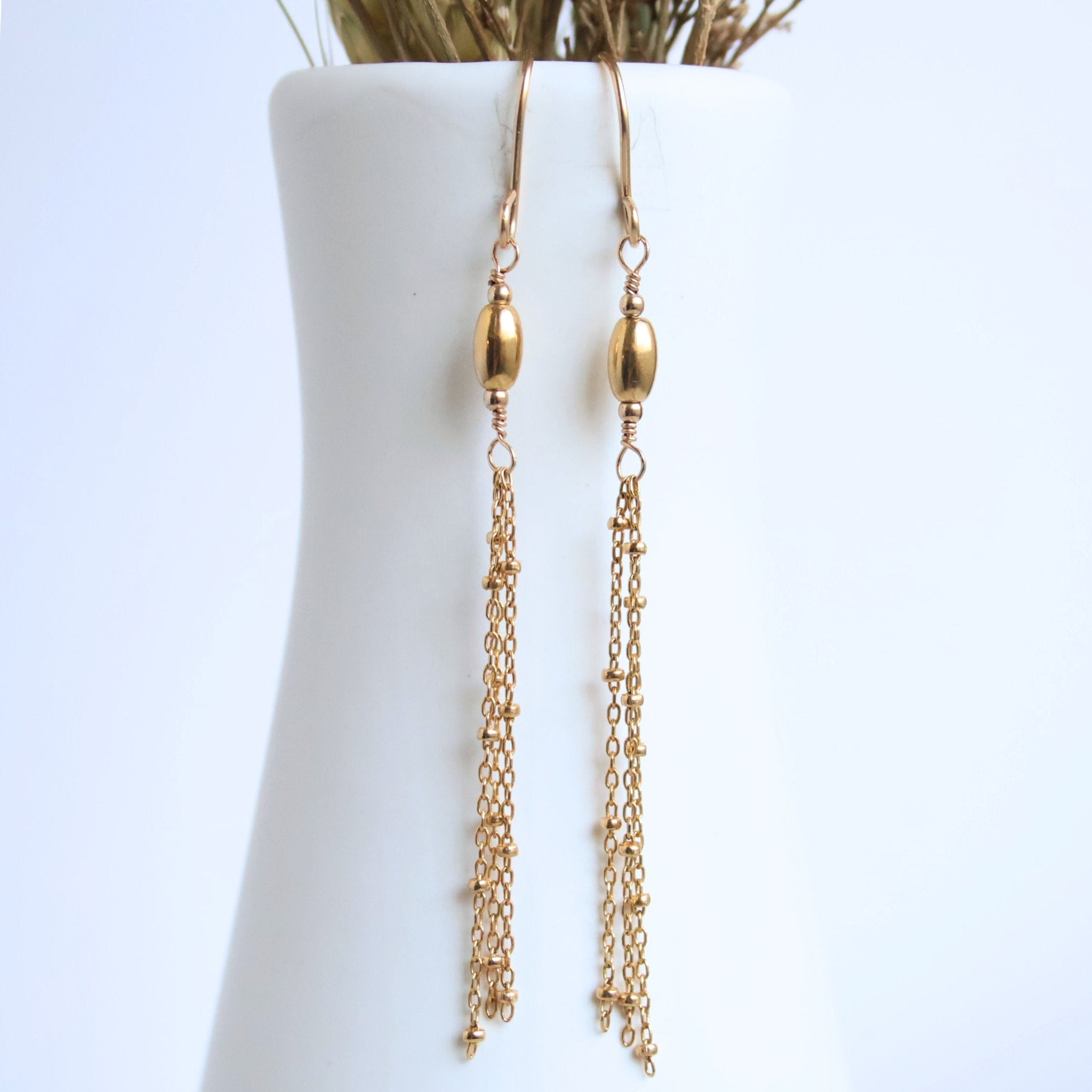 Materials: 14k gold-filled ear wires, barrel beads and chain