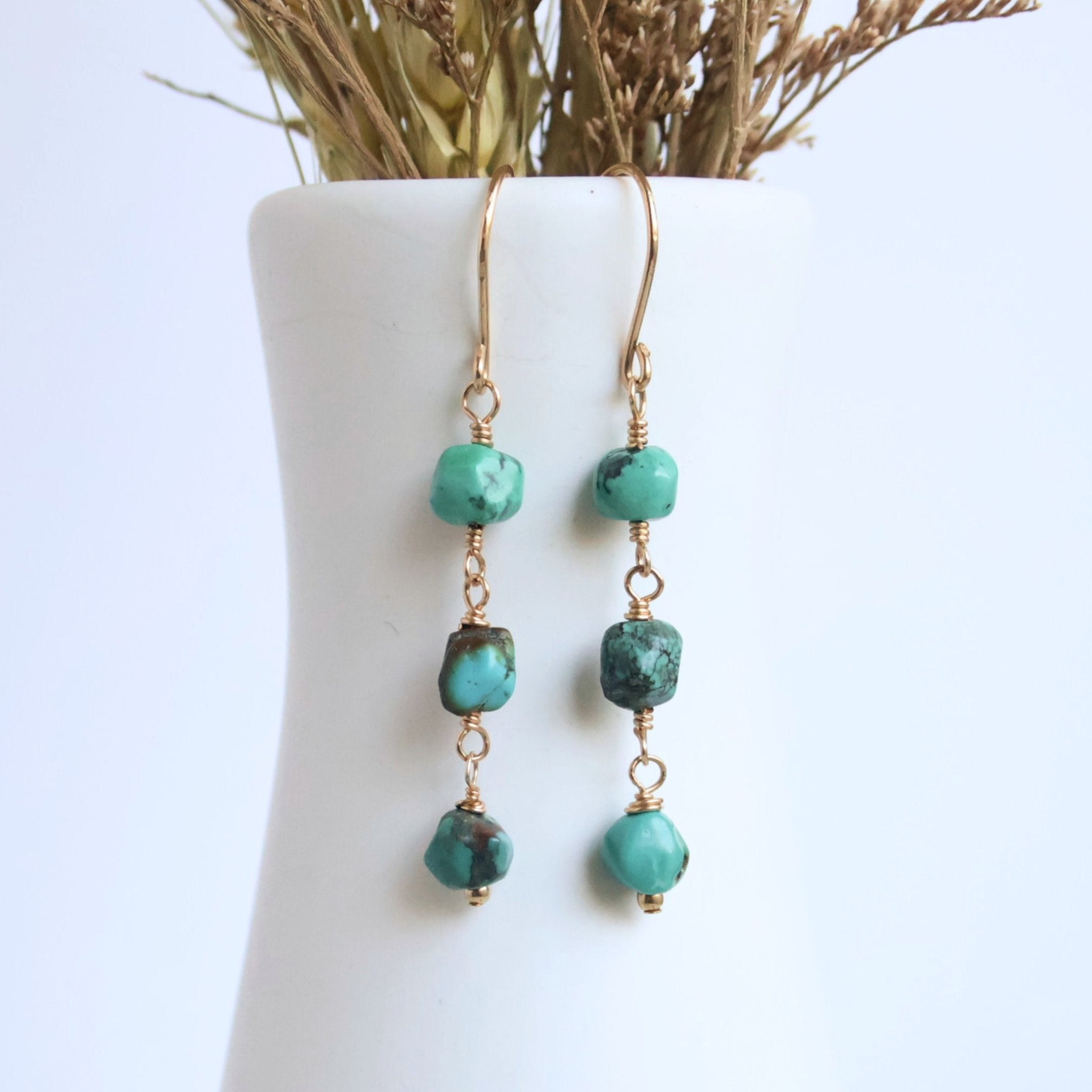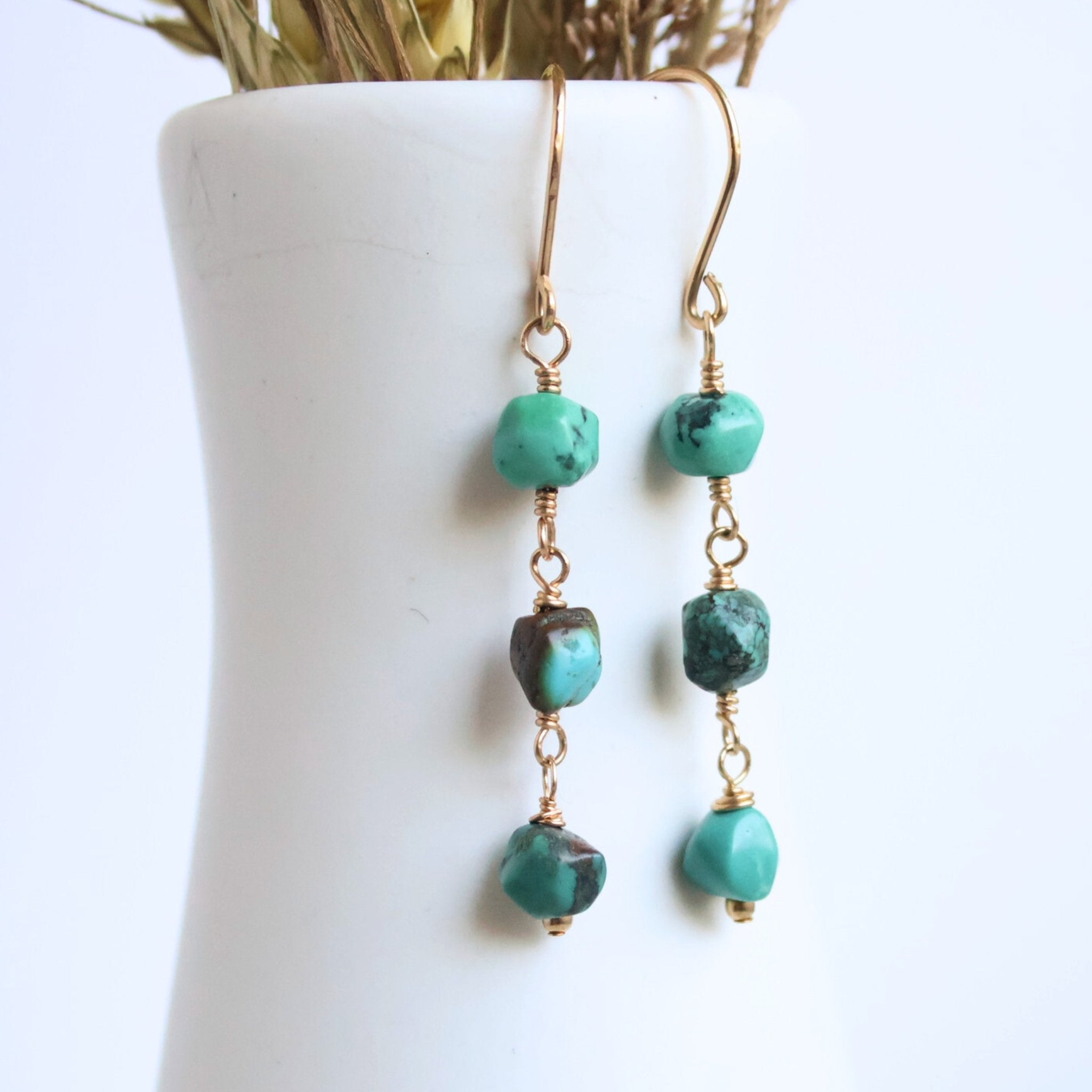 • Materials: 14k gold-filled ear wires, natural Turquoise nuggets