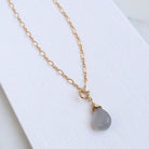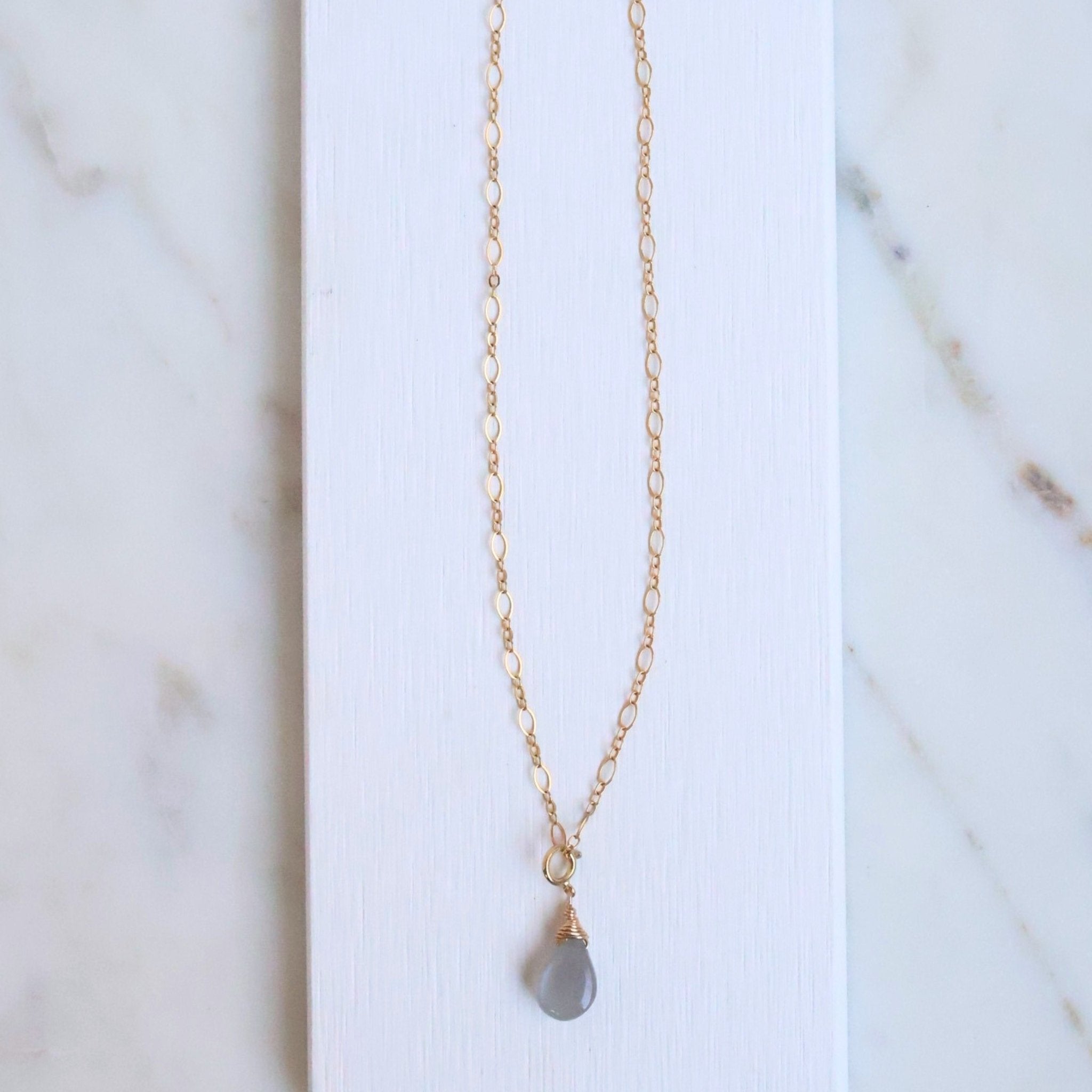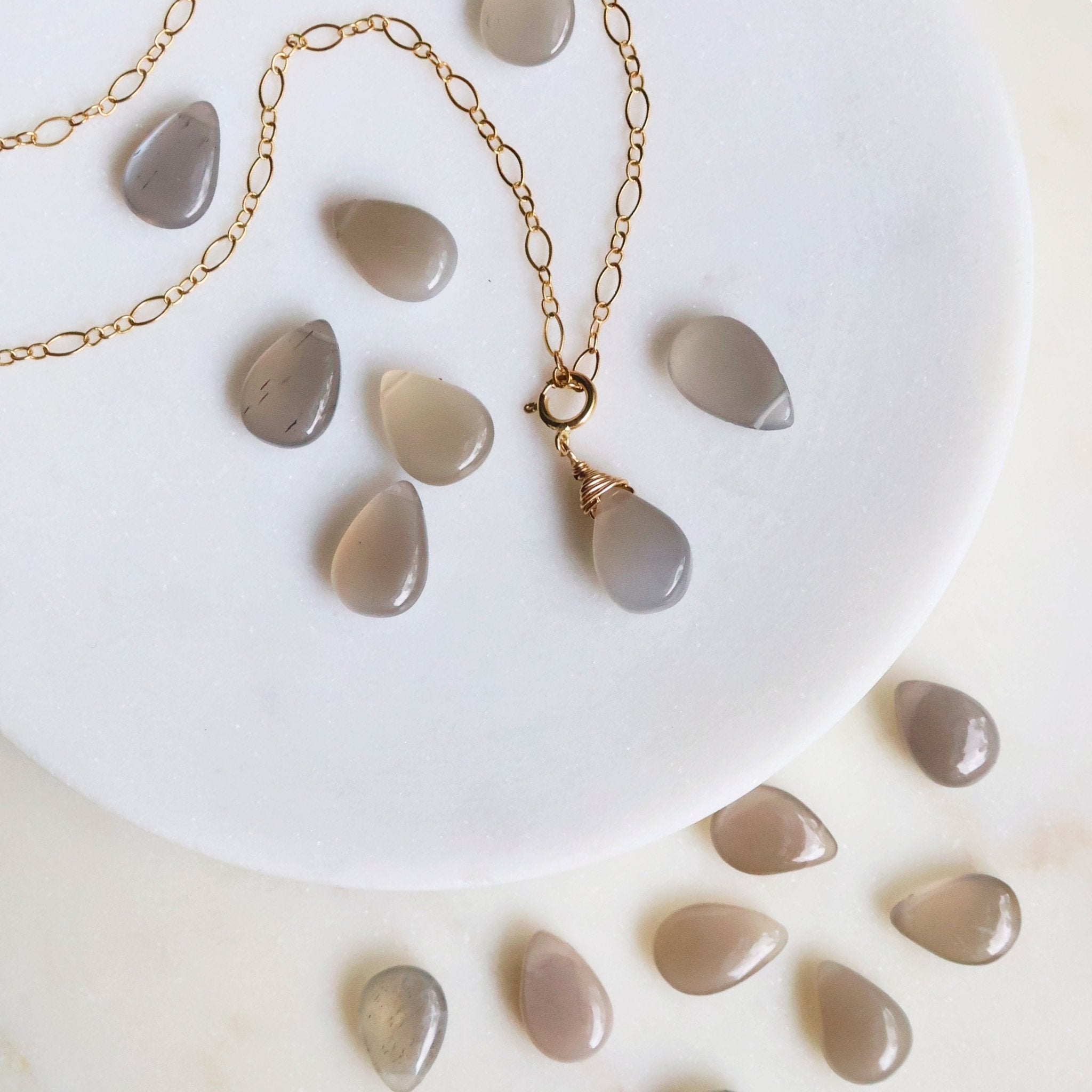 Materials: 14k gold-filled wire and clasp; smooth gray teardrop Moonstone