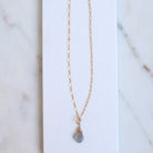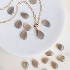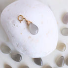 Dreamy and refined, the Gray Moonstone Teardrop Charm Drop shimmers with silvery gray and mink brown undertones—an elegant piece that catches light beautifully. Designed for endless versatility, our removable charm drops can clip securely onto a chain link, over the chain to float freely, or attach to a heavier clasp as a focal accent. For a delightful combination, check out our White Star FWP earrings as well.