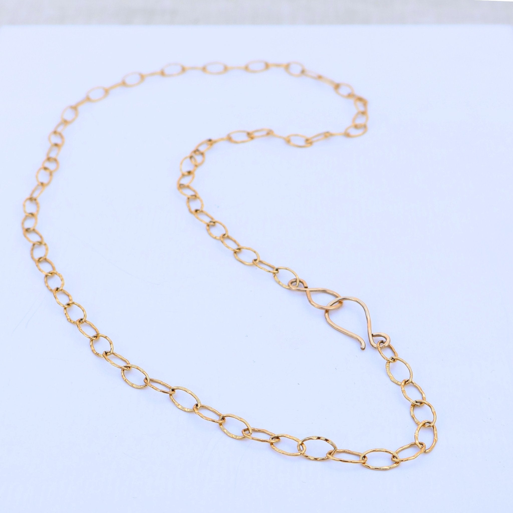 Materials: 14k gold filled chain and handmade hammered hook and closure