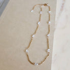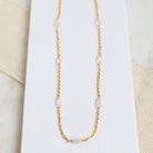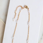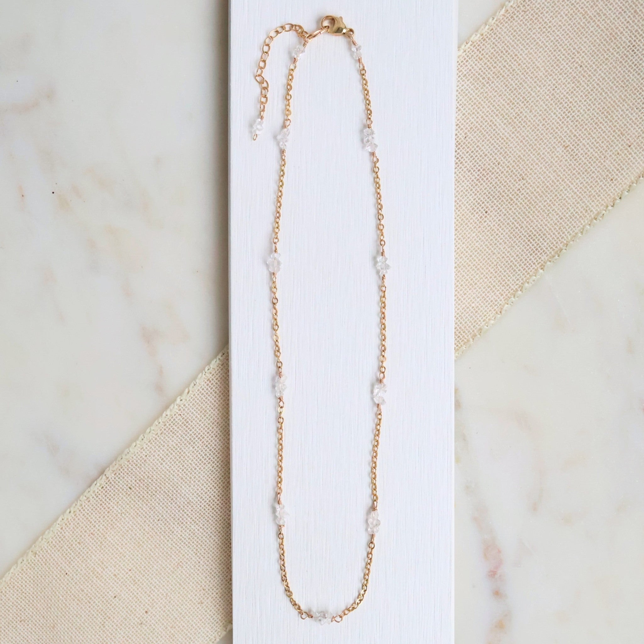 Odette is the understated showstopper you didn’t know you needed. Nine stations of sparkling Herkimer Diamonds — known for their natural clarity and light-catching brilliance — are hand wire-wrapped and spaced along a delicate 14k gold-filled chain. The result is a necklace that glows with quiet luxury, catching flickers of light with effortless grace. At 15" long with a 2" extender, it layers beautifully with other pieces, or shines all on its own.