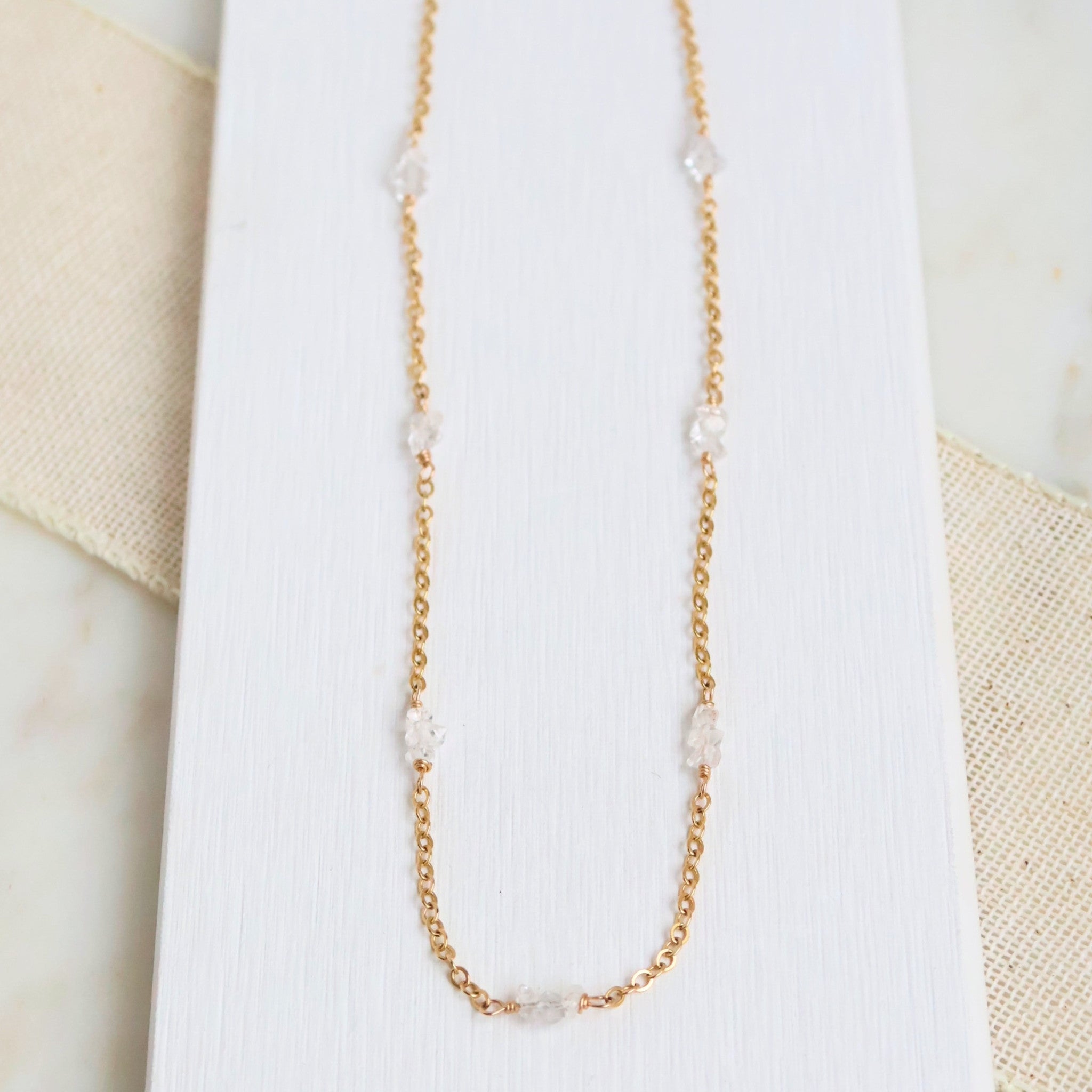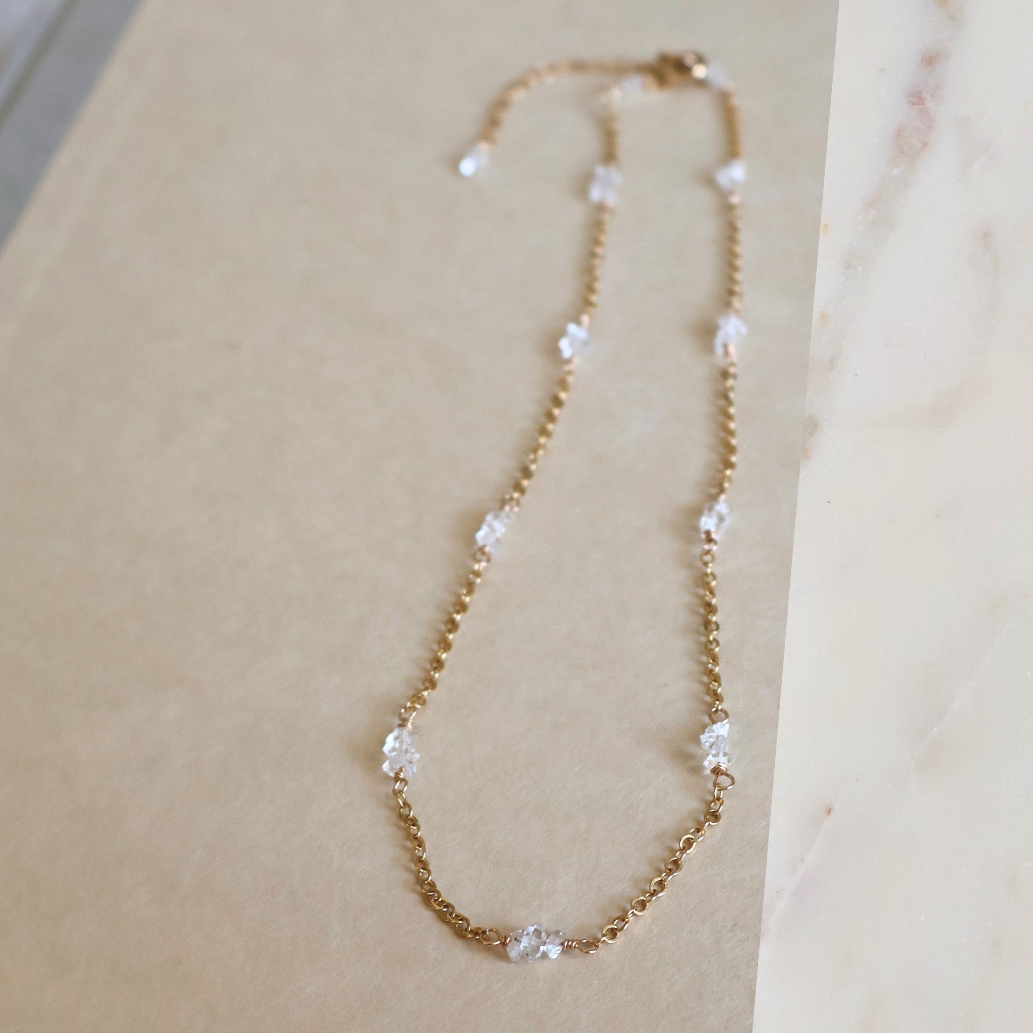 Materials: 14k gold-filled chain and clasp; natural Herkimer Diamonds
