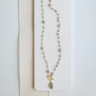 Faceted Labradorite and soft gray freshwater pearls are hand-wrapped in rich vermeil gold, finished with a gold filled toggle and a smooth marquise shaped Labradorite drop. With its shifting gray and gold palette and subtle iridescence, Wisdom is equal parts understated and striking—a piece that adapts effortlessly to your style, your mood, and your day. Wisdom is also available in Kyanite if you prefer a denim blue palette.