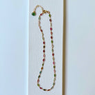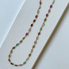 Subtle, colorful, and endlessly versatile. Faye is crafted from a spectrum of smooth Tourmaline rectangles—shades of ocean blue, warm amber, earthy greens, and soft pinks—each one hand-wrapped and linked with Vermeil gold. The result is a dainty chain necklace that feels both playful and elegant.