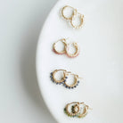 Part of our gemstone-wrapped huggie collection, they’re also available in Pink Tourmaline, Herkimer Diamonds, Freshwater Pearls and Blue Sapphires.