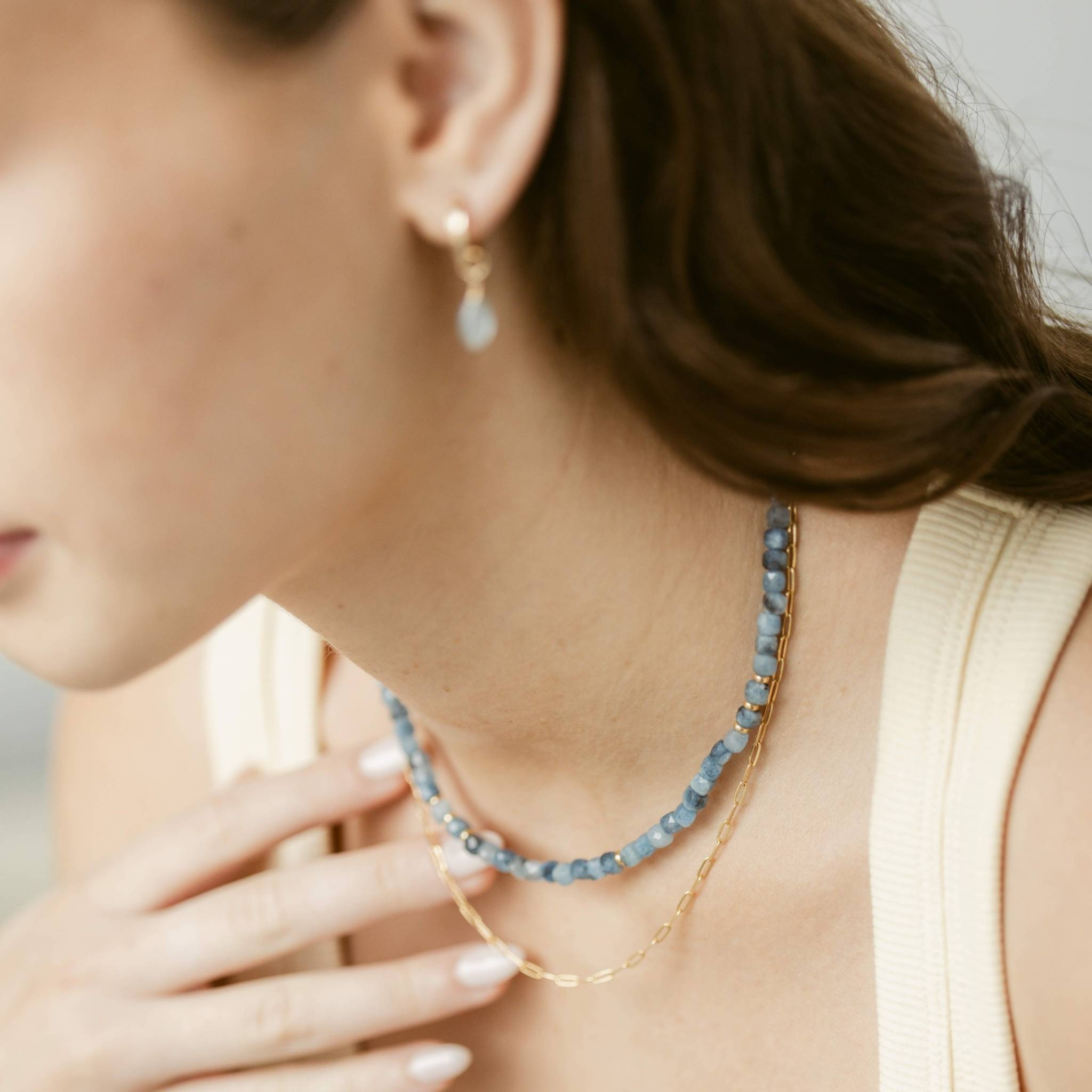 Designed as a versatile staple, Willa Aquamarine shines on its own yet layers beautifully with chains or complementary gemstone necklaces. With its 2" extender, it’s an easy, adaptable piece that moves seamlessly from everyday to elevated.